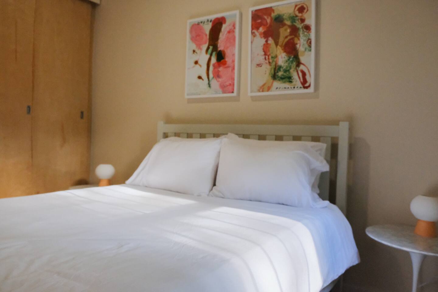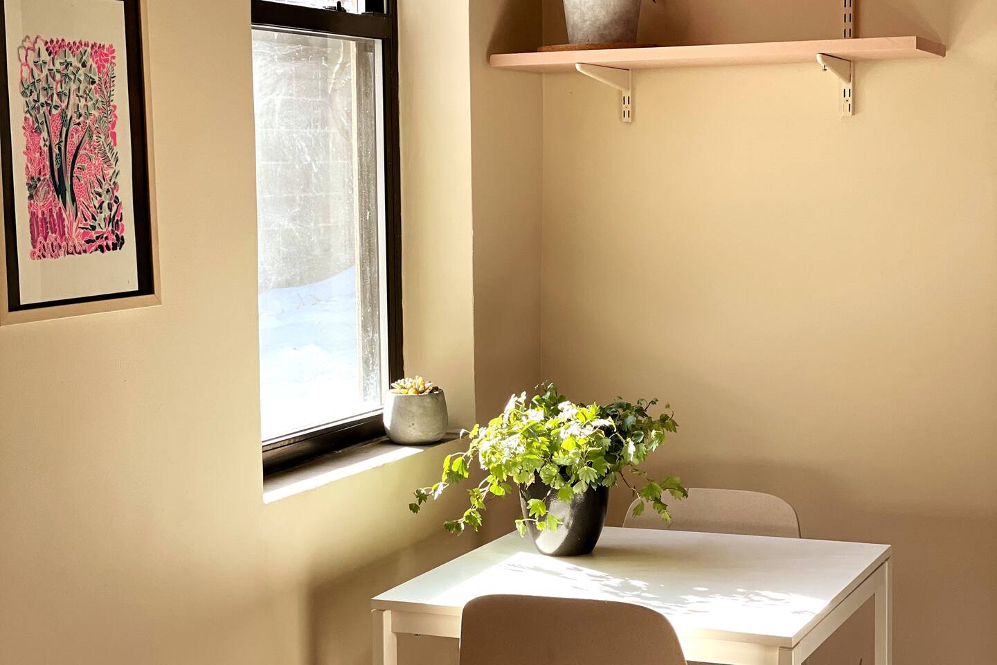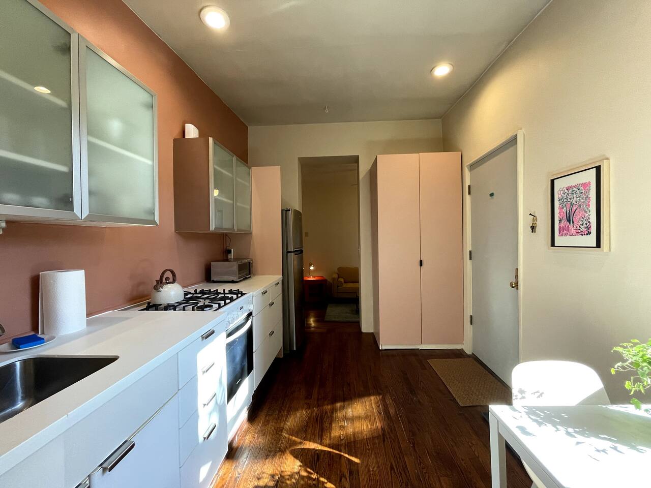 This secluded gem has high ceilings and tall windows, letting in great light and a lovely view of the garden. In the bedroom you'll find a queen bed with new mattress and bed frame, 100% cotton sheets, four comfortable pillows. Amazing wall-to-wall closet with tons of storage options, room to hang short and long garments, drawers, shoe storage, and suitcase storage above. Iron and ironing board provided. The living room is cozy and outfitted with a new seven-foot sofa, which can open up to a full-size bed. The kitchen is fully stocked with everything needed to cook, and a 2 top kitchen table, which can be used for WFH. You'll find tons of kitchen storage as well as an additional utility cupboard. The bathroom has plaster walls and unique, crafty river stone tilework in the shower. Green marble sink, kohler basin and two separate medicine cabinet sections with great storage capacity. You'll find Japanese Maple, Paper Birch and Empress trees in the outdoor space, which bloom beautifully in warmer months. The patio area directly next to your entrance is dedicated to the apartment and has a table and chairs for outdoor relaxation. BBQ in warmer months! As this is a longer term rental, we have a cleaner that can come weekly/bimonthly to do cleanings, change sheets and towels for an extra charge.